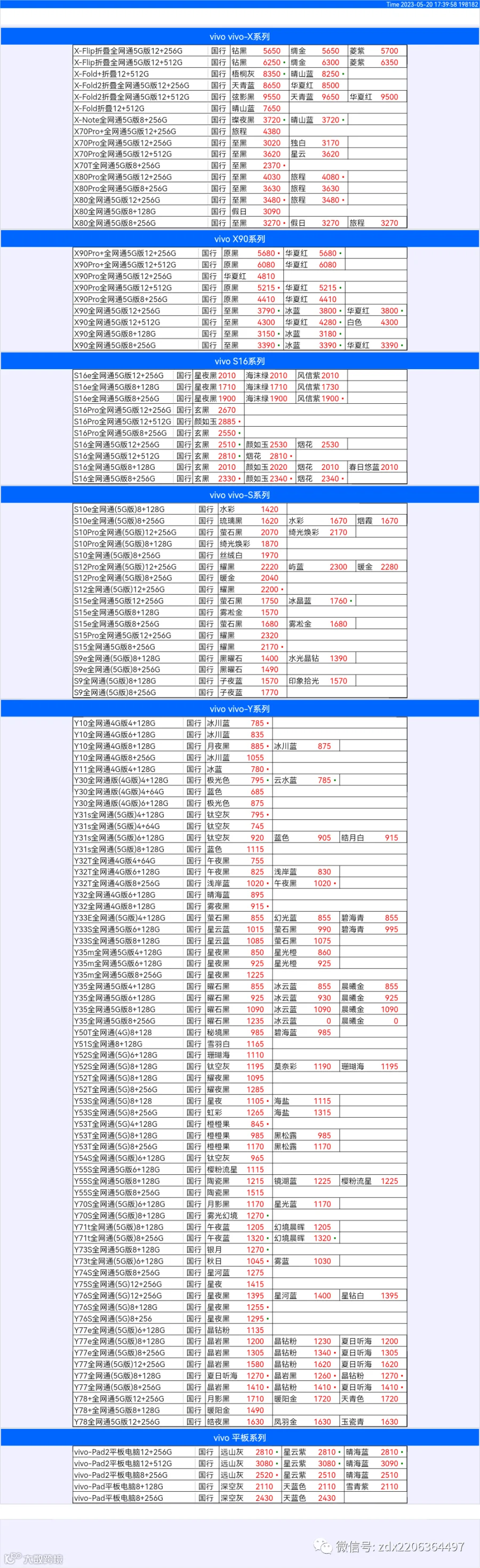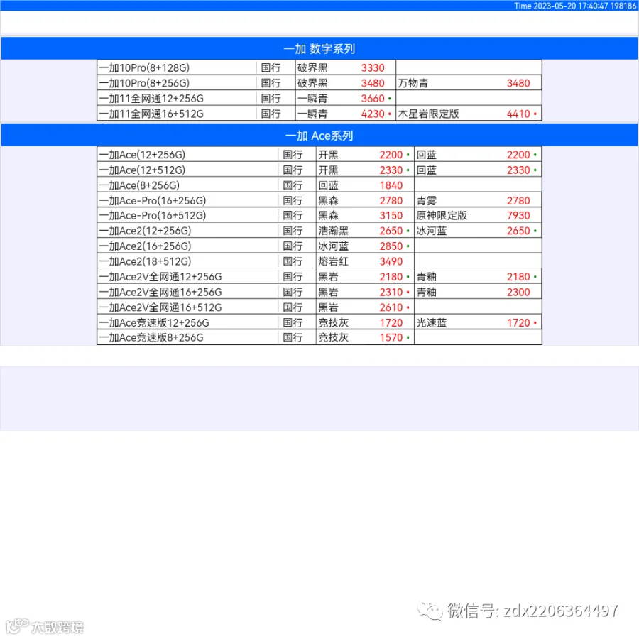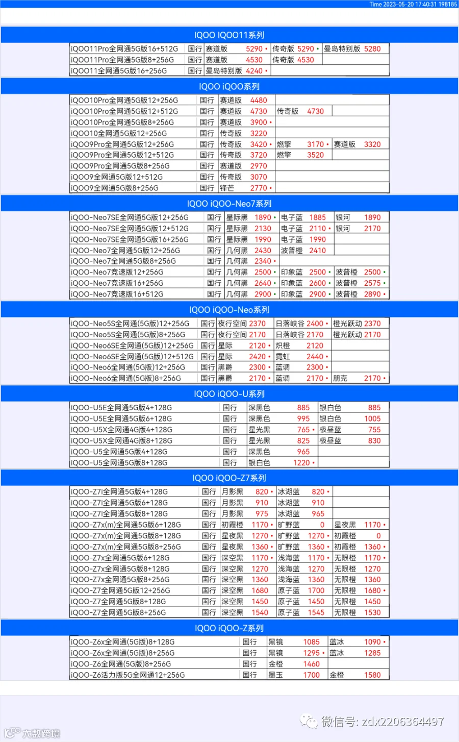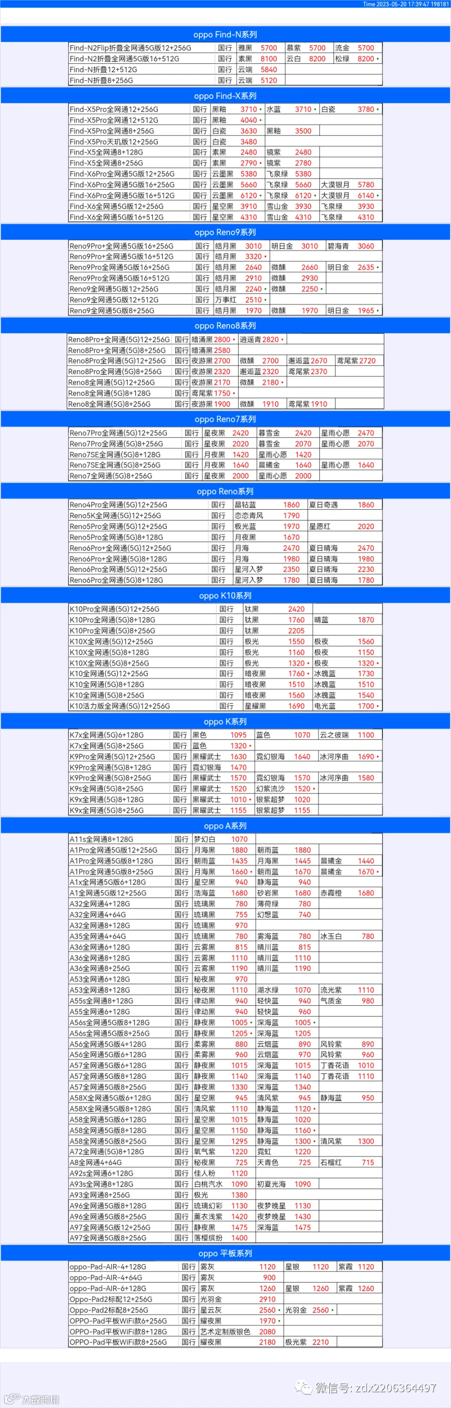 新机报价【2023年5月20日】OPPO   VIVO  IQOO   一加   真我 芯烨微 电子科技