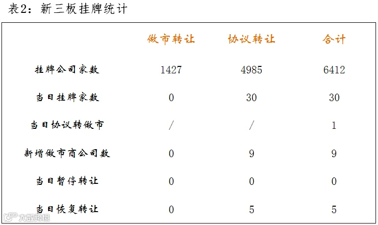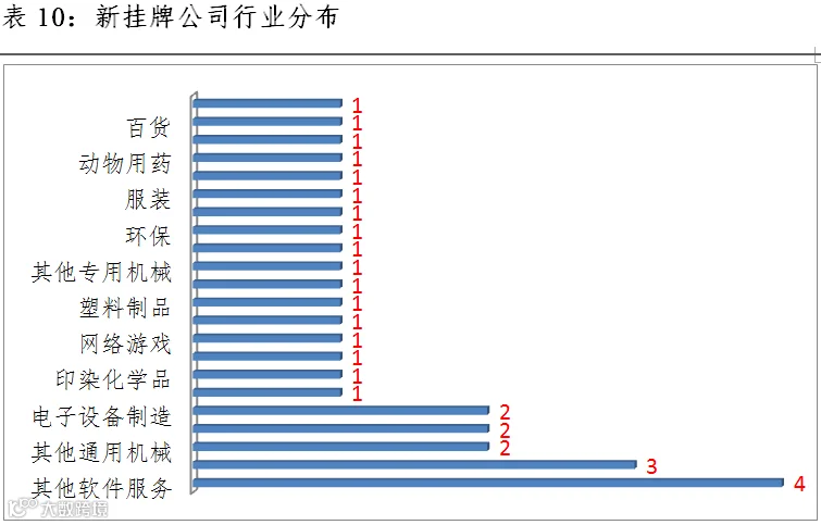 4月6日,共有30家新挂牌公司,均为协议转让公司。挂牌公司行业分布比较分散,其中其他软件服务行业占比较大。