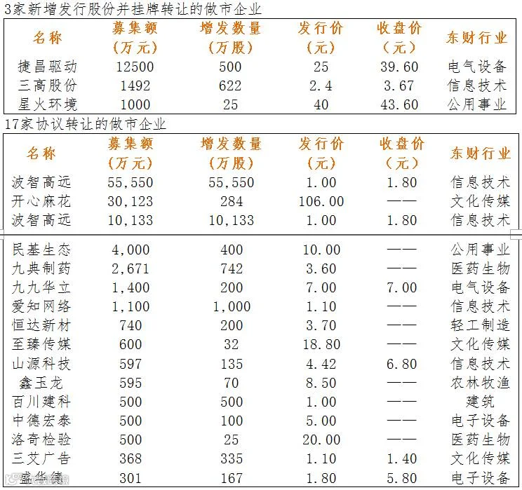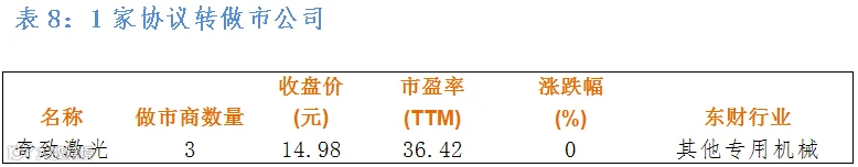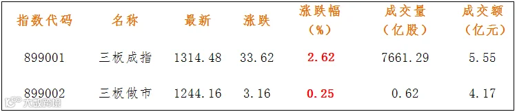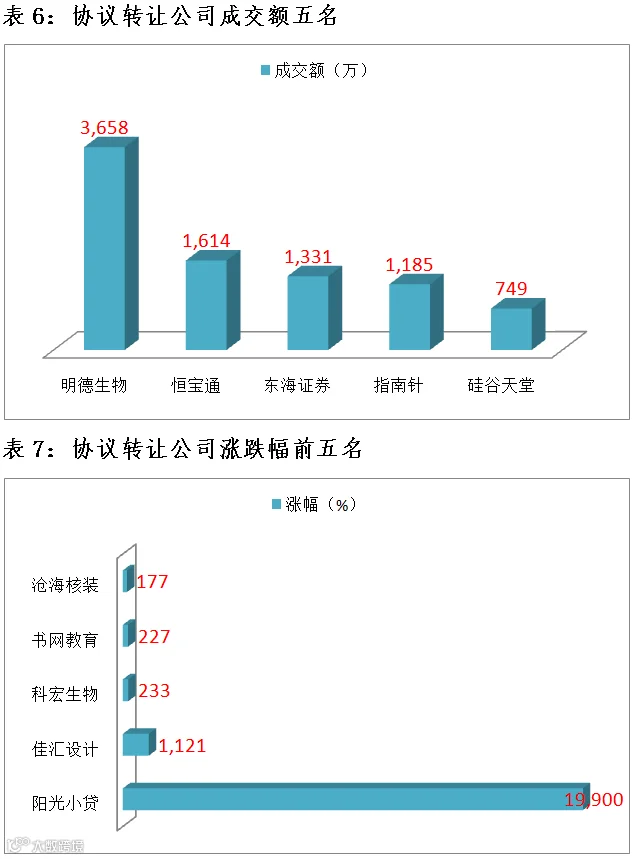 做市企业中有843只个股参与交易,成交额3.89亿元。其中402只个股上涨,325只个股下跌;15家做市企业成交额破千万,成交额前三名为联讯证券7376万、文广农贷4366万、明利股份3979万。