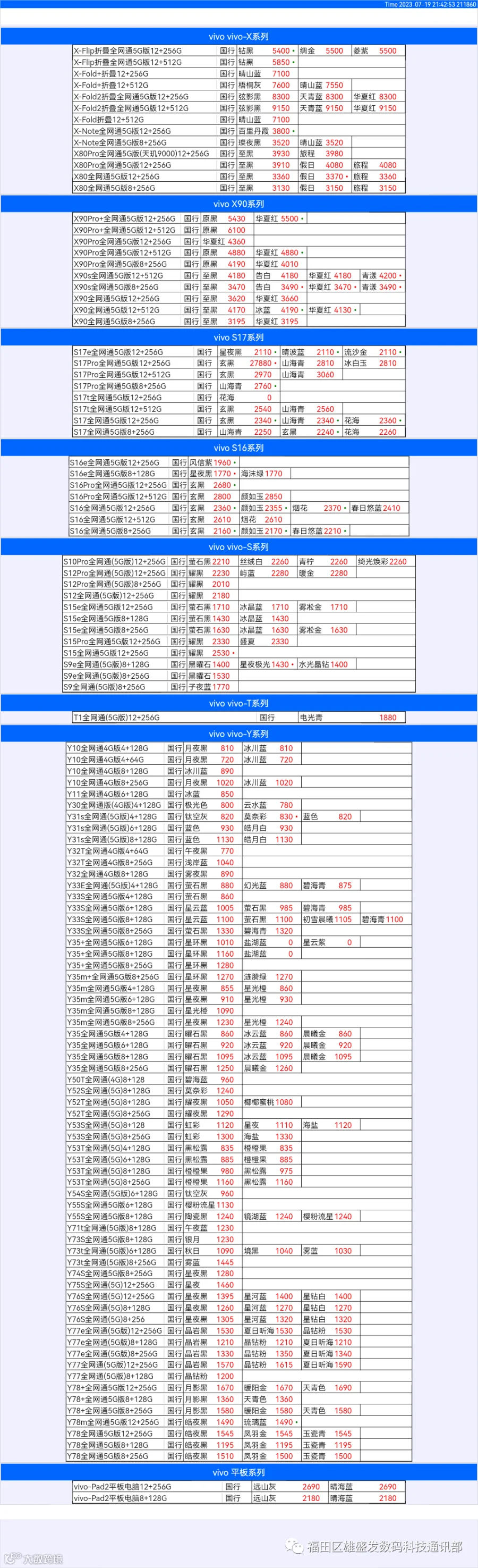 新机报价【2023年7月19日】OPPO   VIVO  IQOO   一加   真我 芯烨微 电子科技