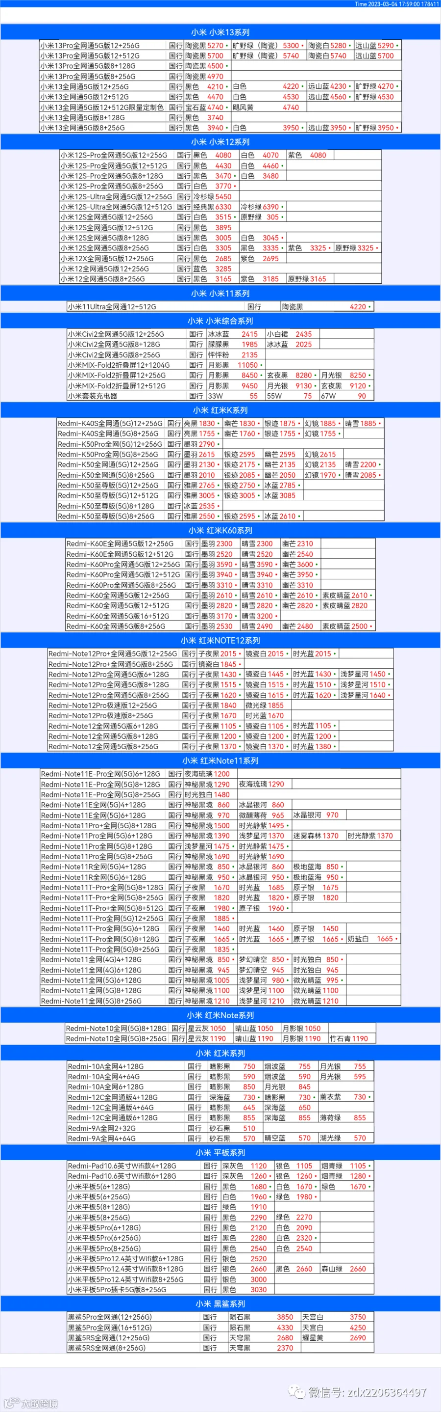 新机报价【2023年3月4日】小米  红米   黑鲨   报价 芯烨微 电子科技