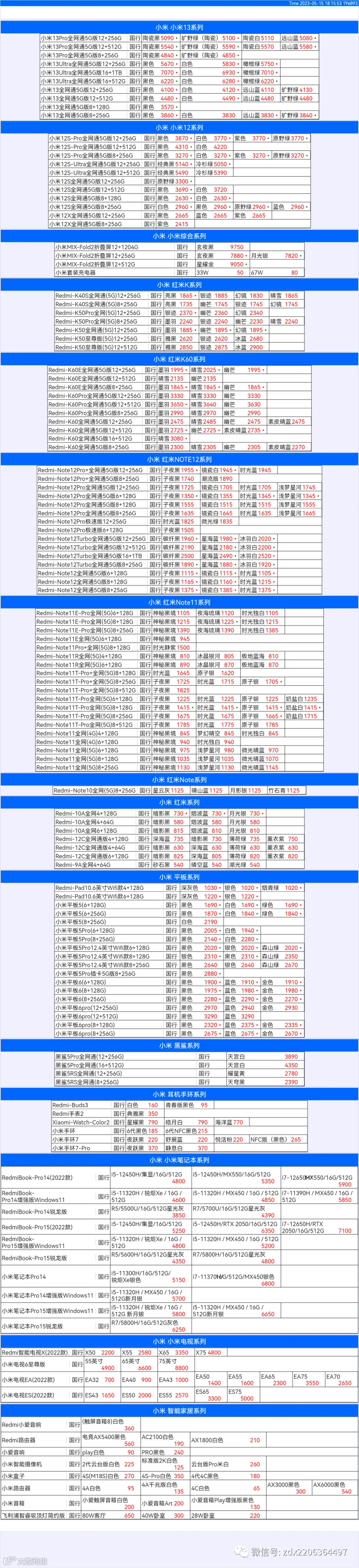 新机报价【2023年5月15日】小米  红米   黑鲨   报价 芯烨微 电子科技