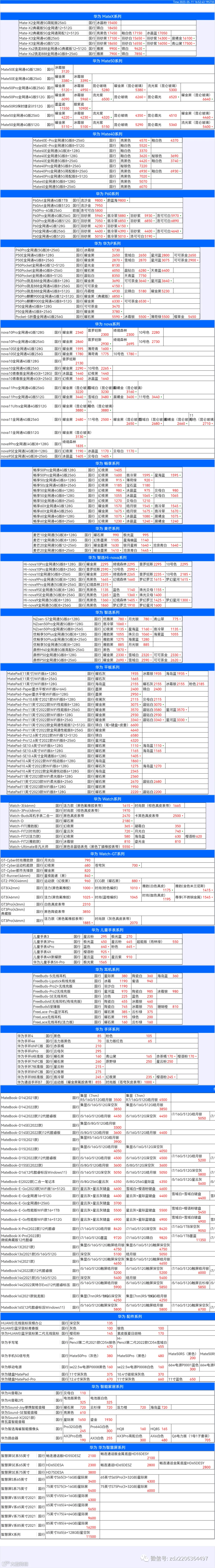 新机报价【2023年5月11日】华为   荣耀 报价 芯烨微 电子科技
