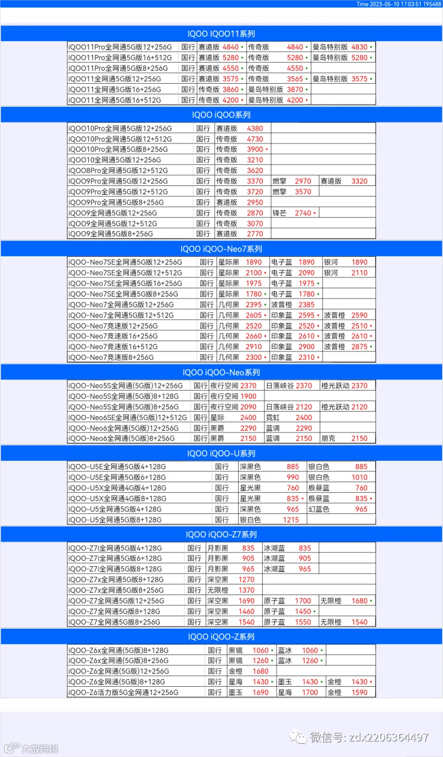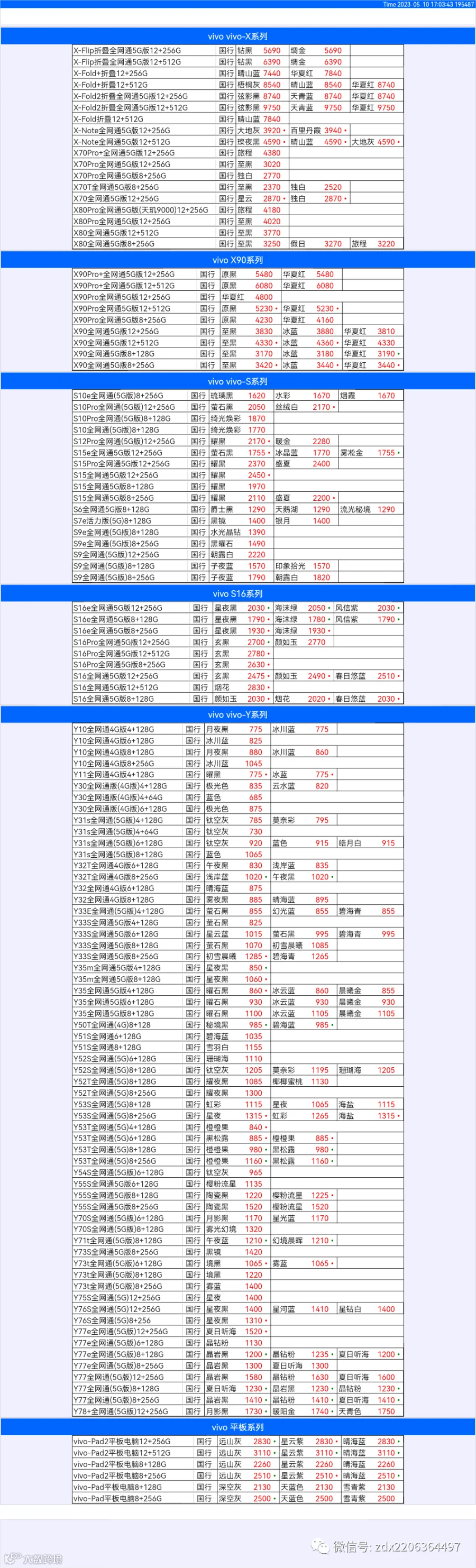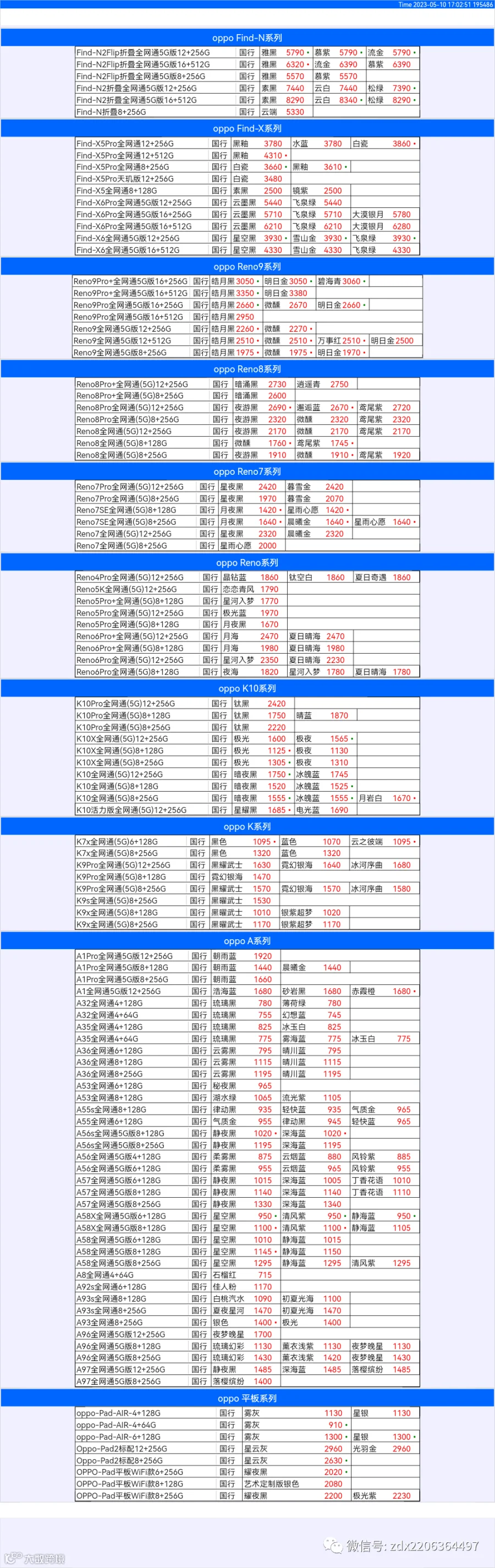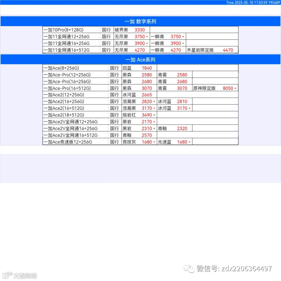 新机报价【2023年5月10日】OPPO   VIVO  IQOO   一加   真我 芯烨微 电子科技