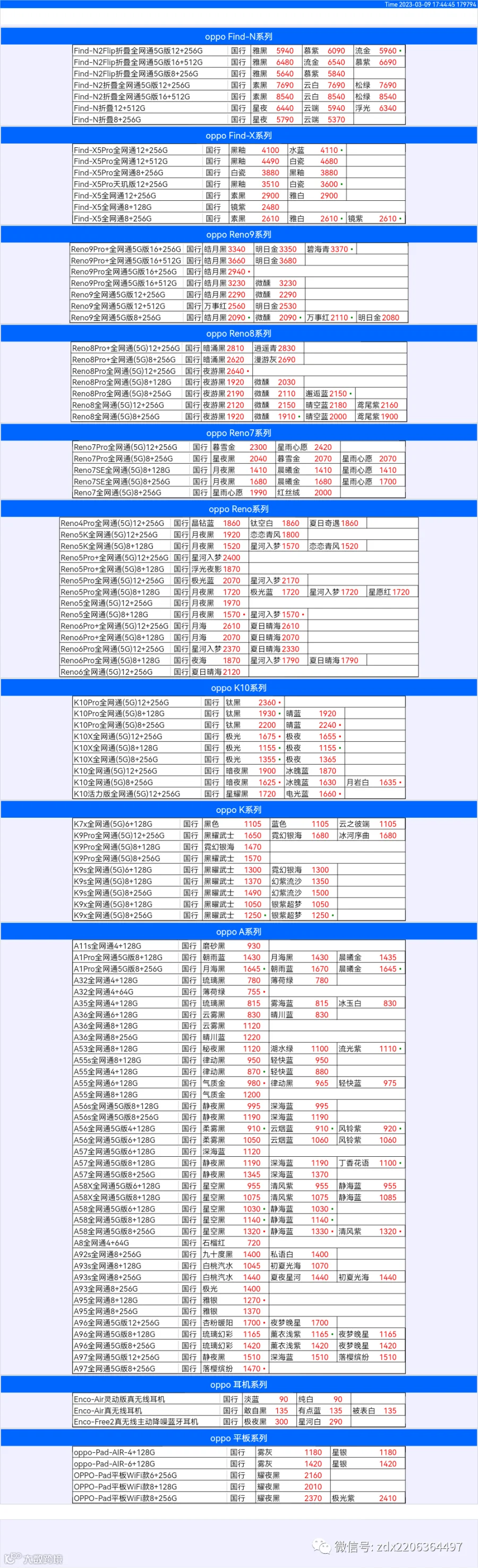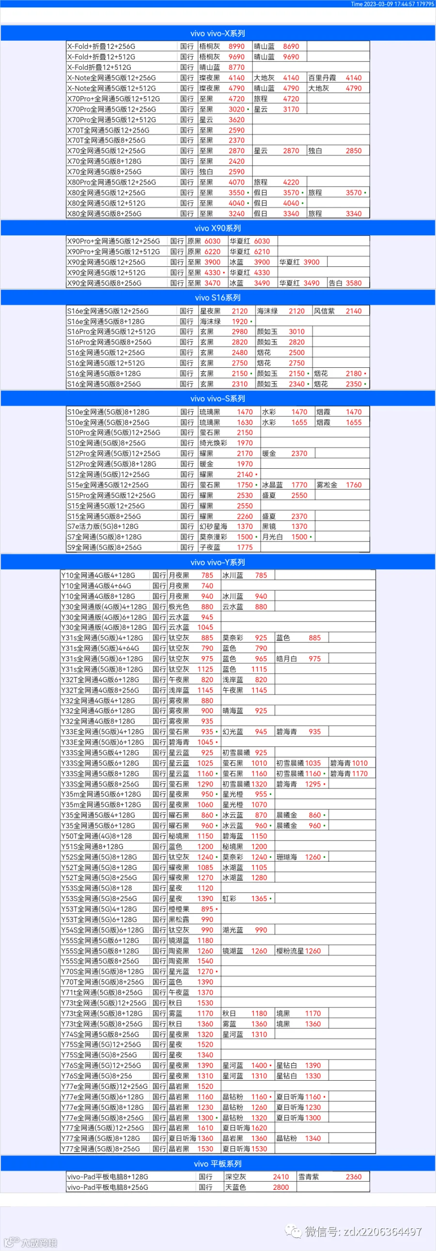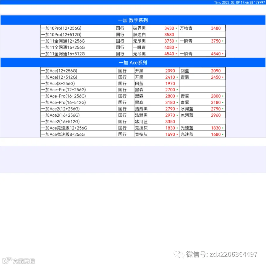 新机报价【2023年3月9日】OPPO   VIVO  IQOO   一加   真我 芯烨微 电子科技