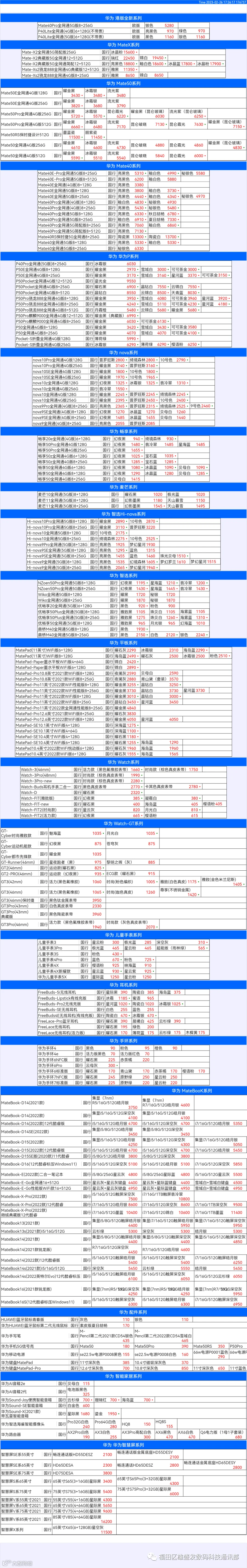 新机报价【2023年2月26日】华为   荣耀 报价 芯烨微 电子科技