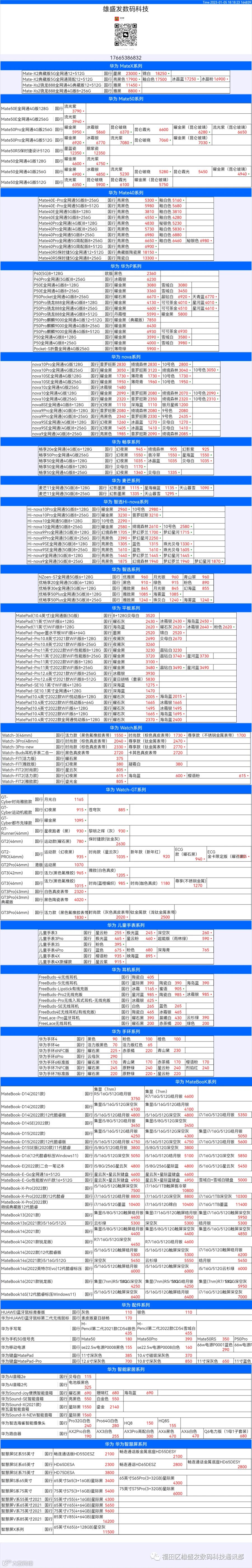 新机报价【2022年1月5日】华为   荣耀 报价 芯烨微 电子科技