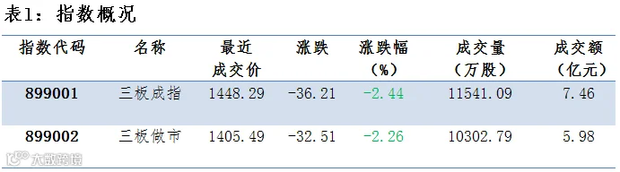 三板成交额下跌 做市指数跌愈2.3%