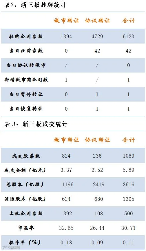 3月17日1060只股票成交,总成交额5.89亿元。其中做市成交3.37亿;协议成交2.52亿元。