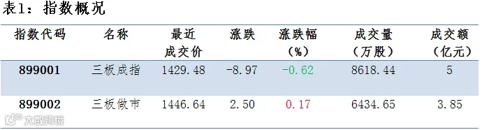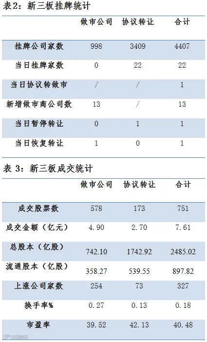 昨日三板共计751只股票成交,总成交额7.61亿元。其中做市成交仅4.90亿;协议成交2.70亿元。