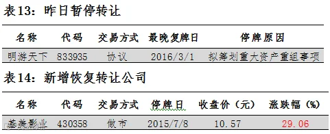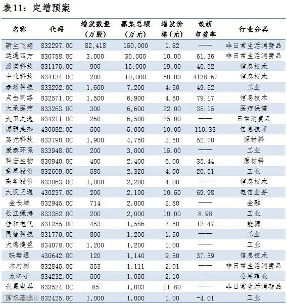 表12:昨日6家公司新增发行股份并挂牌转让: