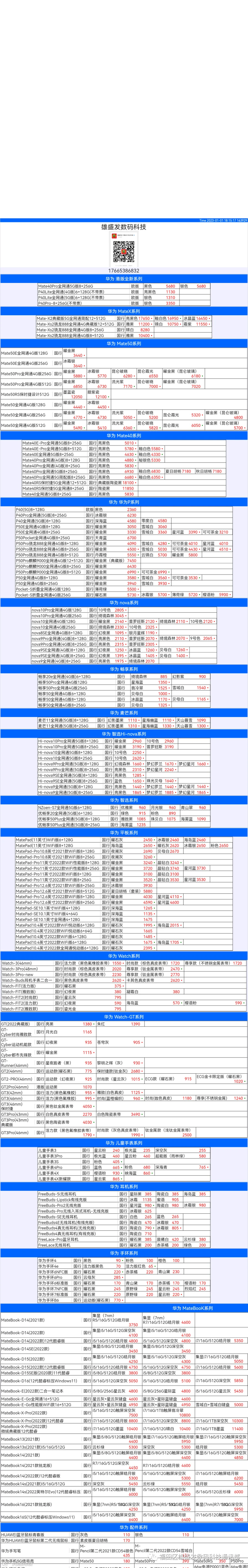 新机报价【2022年1月1日】华为   荣耀 报价 芯烨微 电子科技