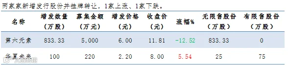表12:昨日13家公司新增发行股份并挂牌转让: