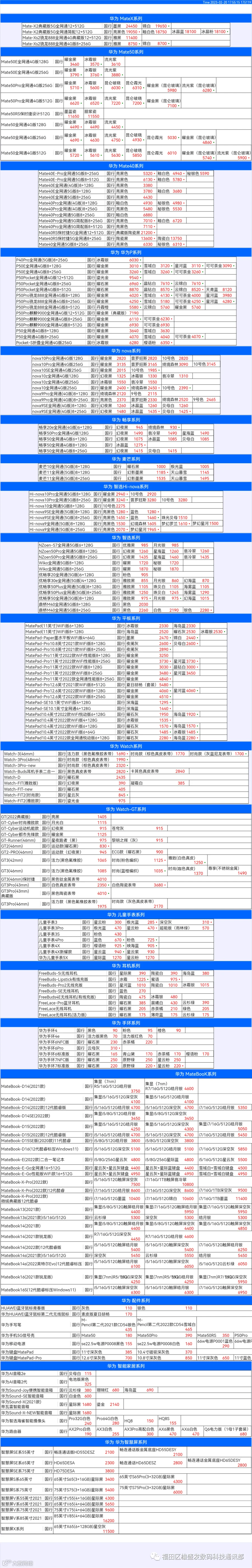 新机报价【2023年2月20日】华为   荣耀 报价 芯烨微 电子科技