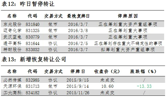 五岳鑫、中天科盛和本益科技涨幅居前,分别为160.00%、73.71%和26.80%。相比之下,硕泉园林、天源环保和差旅天下则跌幅居前分别为20.63%、13.33%和12.50%。