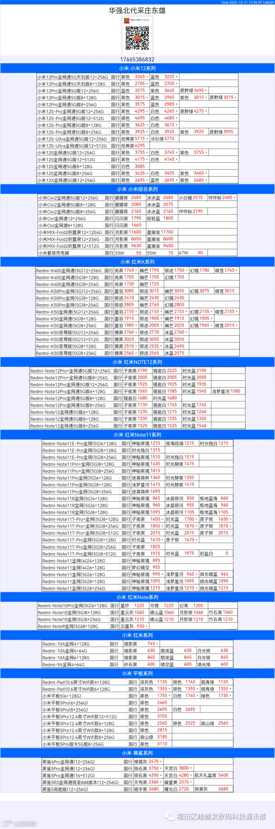 新机报价【2022年12月11日】小米  红米   黑鲨   报价 芯烨微 电子科技
