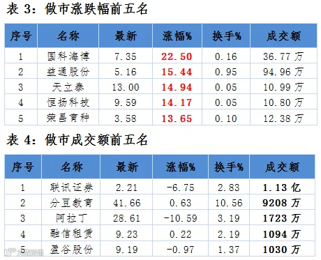 个股表现:当日7家公司成交额破千万。其中联讯证券破亿,成交额达1.13亿;分豆教育紧随其后,成交额达9208万。