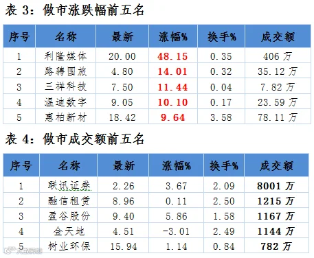 三板成交金额小幅回暖 做市指数翻红: