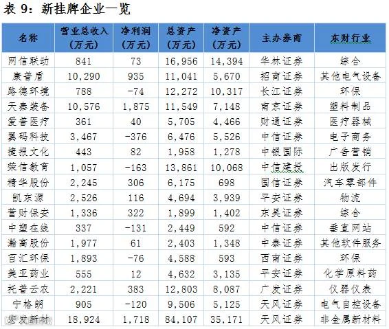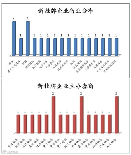 点评:当日新增18家公司。其中托普云农为新股首发做市企业。新挂牌企业行业中,综合和环保行业占比较大。主办券商方面中信证券、平安证券与天风证券占比较大。