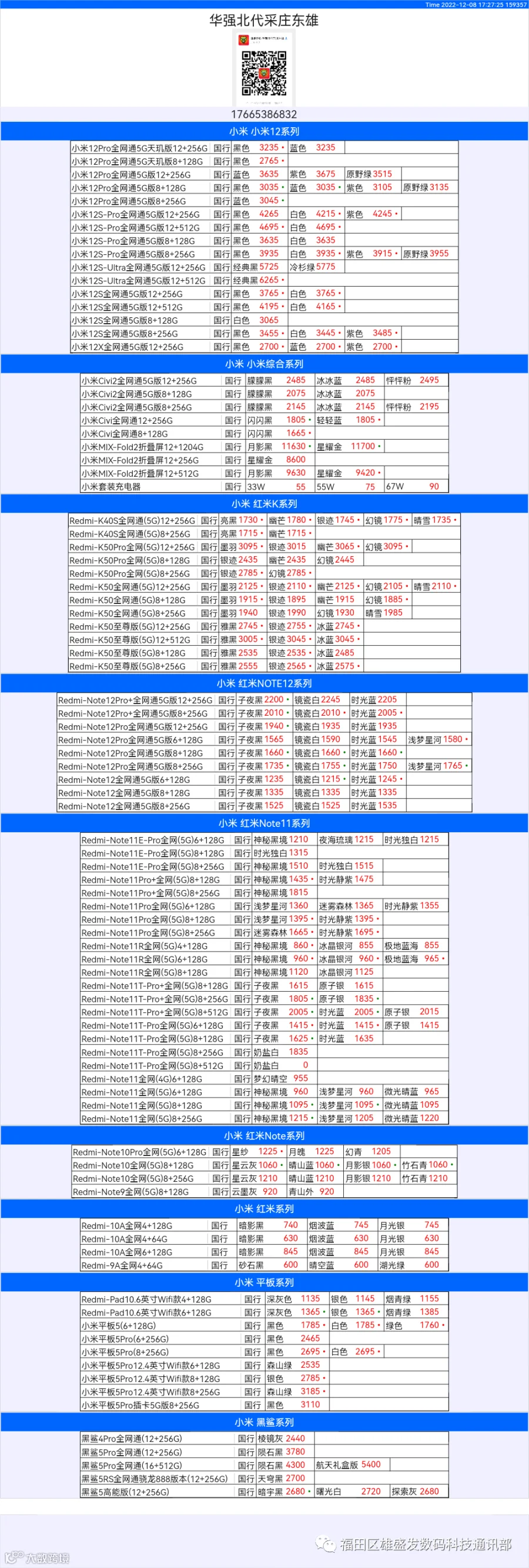 新机报价【2022年12月08日】小米  红米   黑鲨   报价 芯烨微 电子科技