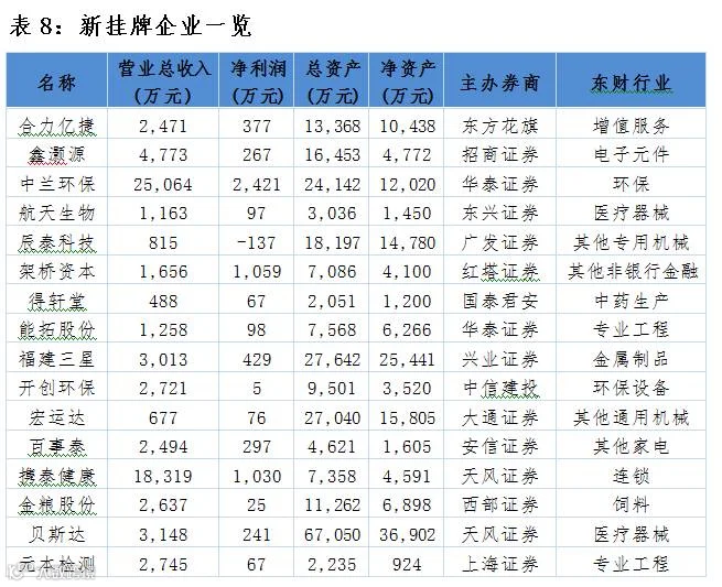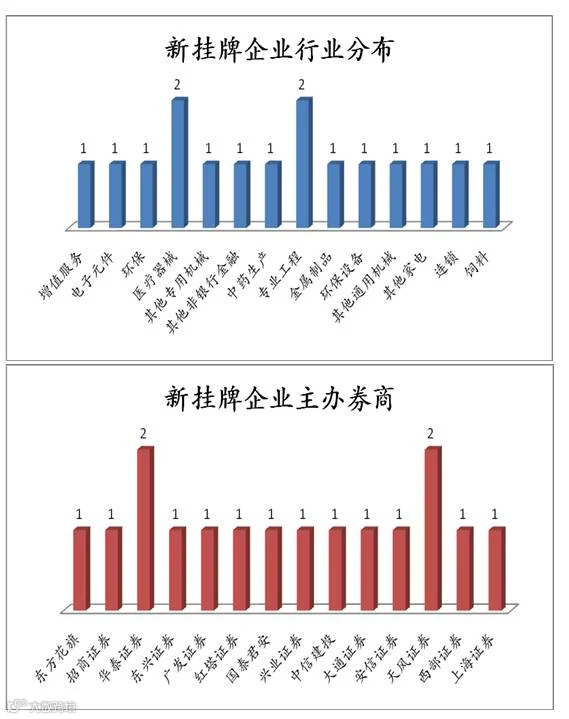 点评:当日新增16家公司,其中合力亿捷为新股首发做市公司。新挂牌企业行业中,其他医疗企业和专业工程行业占比较大。主办券商方面华泰证券与天风证券占比较大。