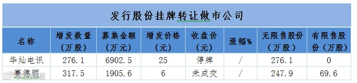 表10、昨日9家公司新增发行股份并挂牌转让:2家做市公司、7家协议转让公司分别为中舟环保、南铸科技 、志晟信息、薪泽奇、奥特股份、九洲光电、联兴科技。