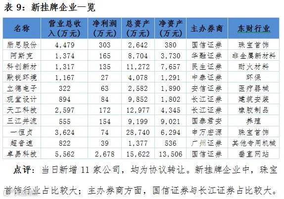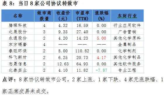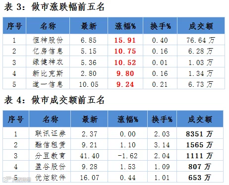 个股表现:当日9家公司成交额破千万。其中联讯证券、东海证券和西部超导位居前列,成交额分别为8351万、5823万和4108万。