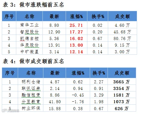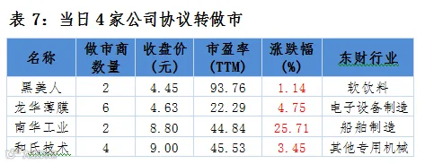 点评:4家协议转做市企业中,全部上涨。南华工业协议转做市企业首日涨幅居做市公司首位,涨幅25.71%。