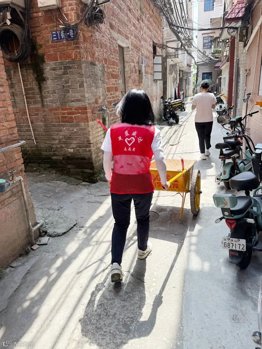之后的三次一线支援,我都自己先跑一遍:清积水、上门宣导、“冷巷”整治……只有亲手干过,才知道哪儿容易积水、哪儿老人多、哪儿需要多备几把铲子,把握工作内容与难度,做好动员组织,感受抗疫的非凡意义。台风肆虐、烈日当空,看着志愿者忙碌身影,听着居民一声“辛苦了”,那一刻,觉得所有忙碌都有了回音。我满心感动,也愈发坚定了动员大家支援的决心。