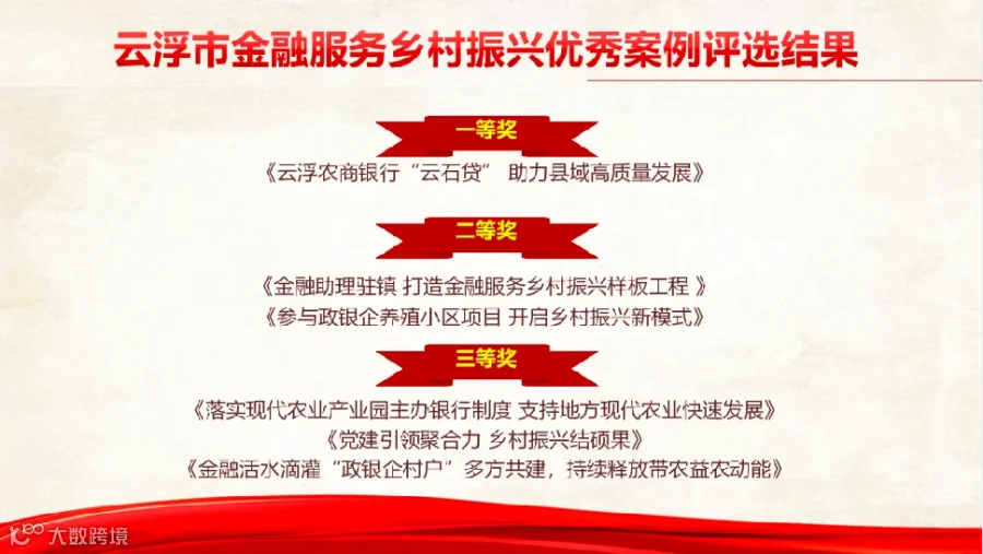 近日,在中国人民银行云浮市分行、国家金融监督管理总局云浮监管分局和云浮市“百千万工程”金融专班办公室联合开展了云浮市金融服务乡村振兴优秀案例评选活动。其中,云浮公司联合云浮农商银行基于国家担保基金批量化业务模式开发的“云石贷”案例荣获云浮市金融服务乡村振兴优秀案例“一等奖”。