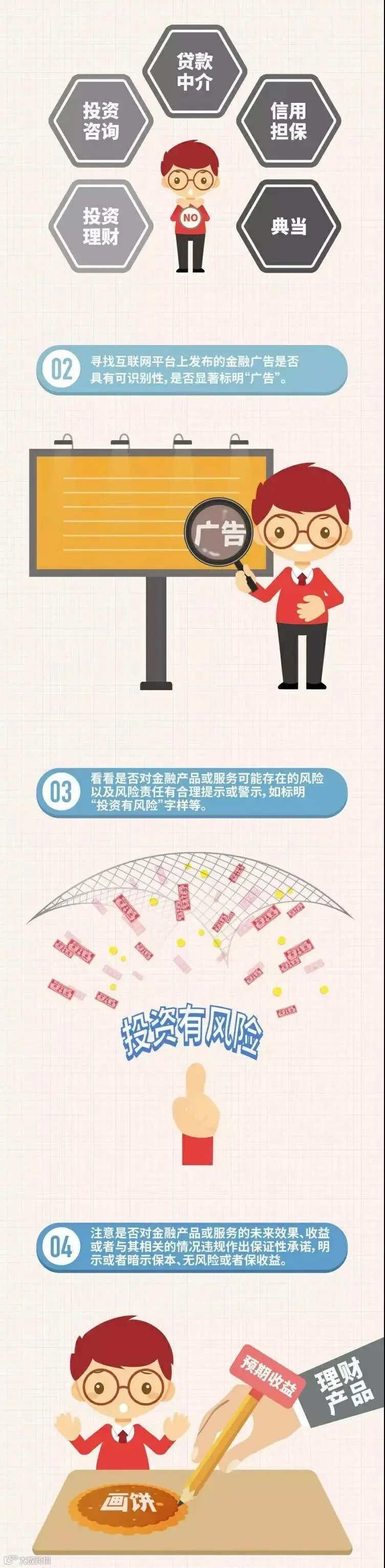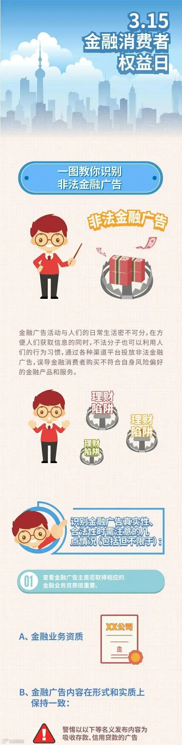 又是一年“3.15”,一图教你识别非法金融广告,保护好自己的“钱袋子”。