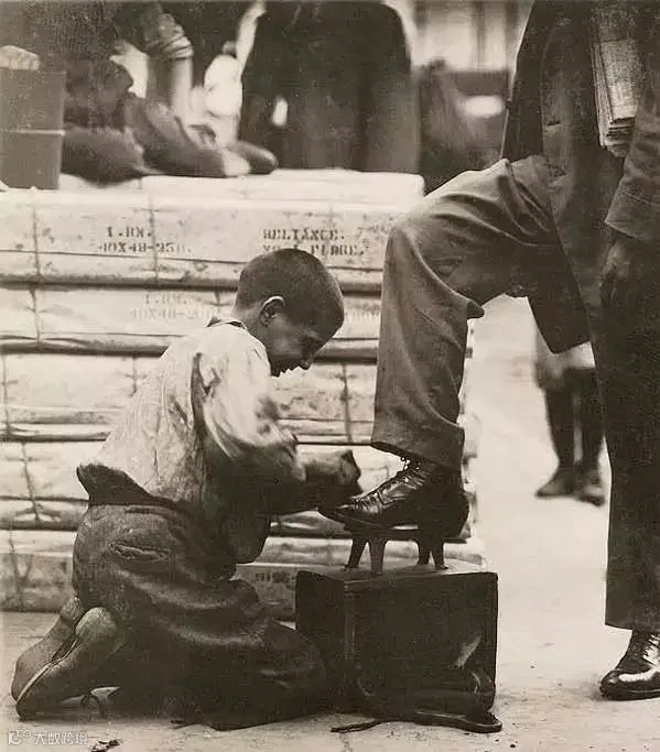 我以一种欣赏的眼光看着男孩,然后陪他去批发市场选购了擦鞋箱和其他各种擦鞋用具。