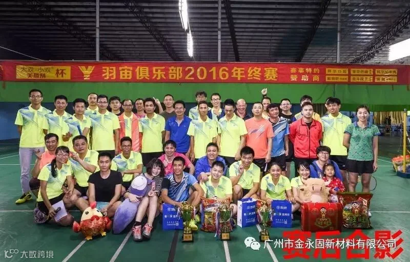 广州市金永固新材料有限公司2017年1月8号由广州市金永固新材料有限公司赞助的大双-小双 美缝剂杯-宇宙俱乐部羽毛球赛2016年终总决赛在新塘新羽轩球馆盛大举行。