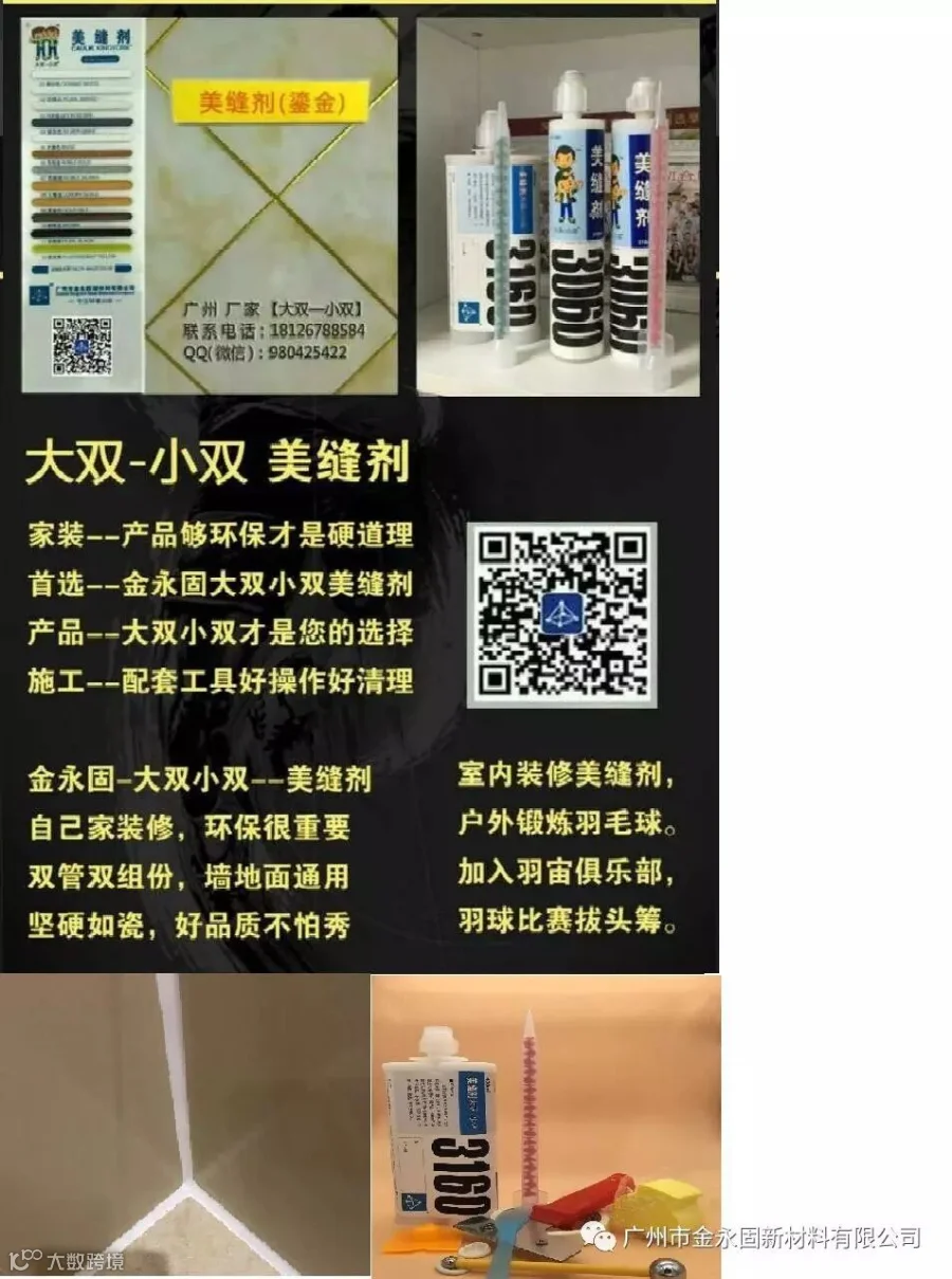 金永固的大双小双美缝剂是您家装修的首选产品,环保简洁易操作,给您一个精致完美的家。
