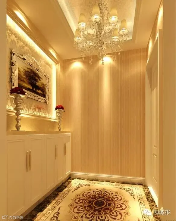 足够宽敞的玄关空间、光彩明亮的灯饰、富有艺术气息的软装,再搭配高贵抢眼的拼花,如此富丽堂皇的玄关绝对会让客人留下深刻的印象: