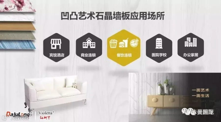 接下来大巨龙集团墙板事业部刘亚勋先生介绍《红珊兰》品牌凹凸石晶墙板和PP膜的应用