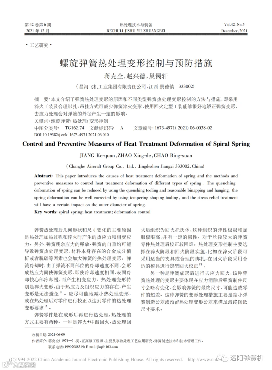 螺旋弹簧热处理变形控制与预防措施