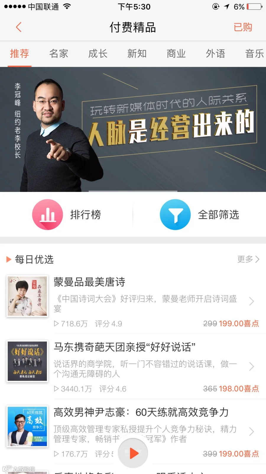 感谢大家的支持,本人的喜马拉雅付费音频排行第5,付费排行周榜排29名。在大咖名人云集的喜马拉雅APP,能有这个成绩我感到非常意外和满意。