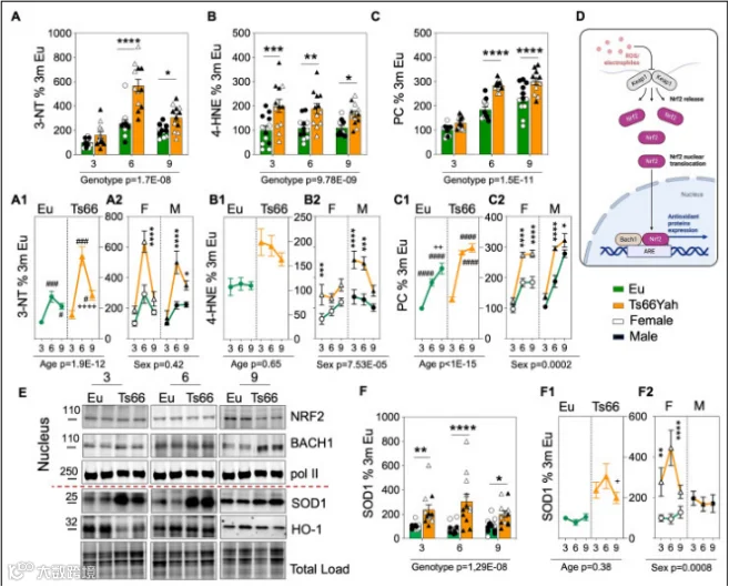 2. 进一步研究者发现 Ts66Yah 小鼠具有明显的神经退行性变的分子特征。