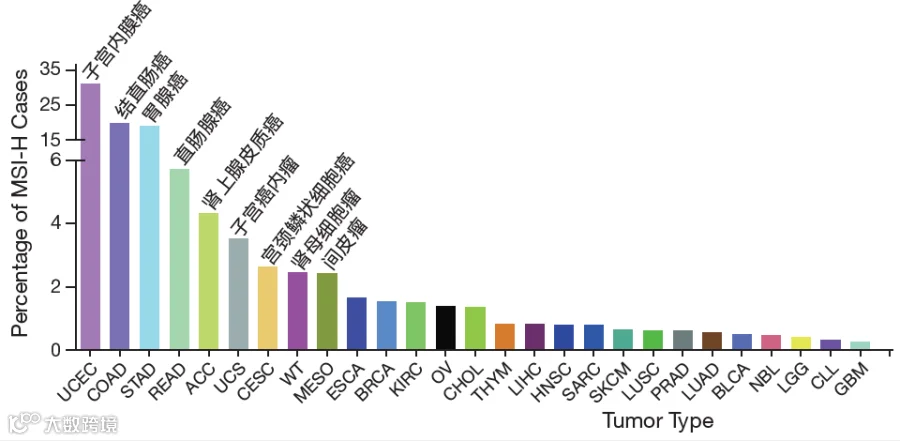 39种主要肿瘤类型中MSI-H的发生率[2]