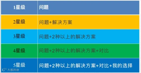 人力总监教给我们如何正确面对问题。首先要树立正确的解决问题的心态,遵循五星级的解决策略,即面对问题时,不仅要提出解决方案,还要至少考虑两种以上的方法,并进行对比分析,最终作出明智的选择。审视自己的现状,我发现自己正处于由三星级向四星级转变的关键阶段。尽管我能提出多种解决方案,但往往缺乏对不同方法优劣的比较思考,这导致我在选择时常常感到纠结。