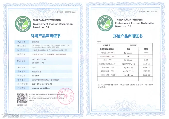 第三方EPD认证证书