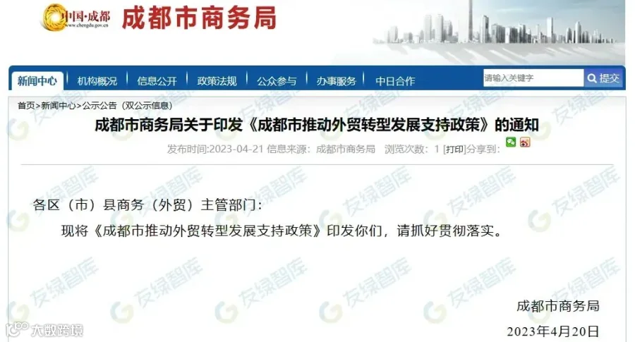 政策名称:《成都市推动外贸转型发展支持政策》
