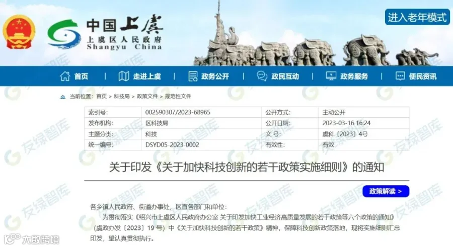 政策名称:《关于加快科技创新的若干政策实施细则》