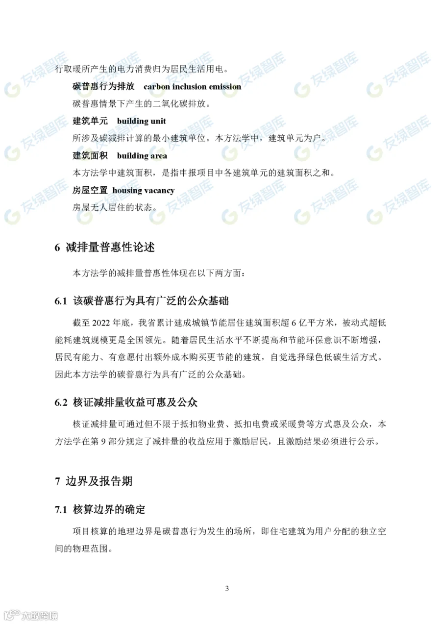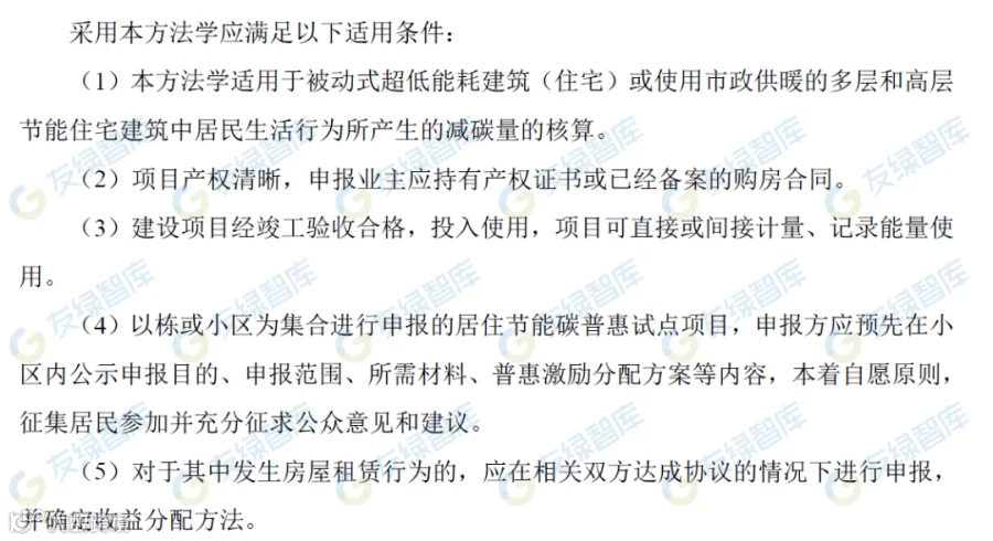 《方法学》的适用条件首先是节能住宅建筑中居民生活行为所产生的减碳量的核算。