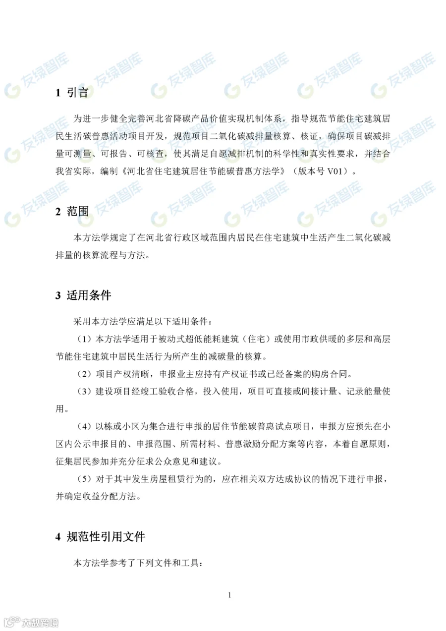 8月29日,《河北省住宅建筑居住节能碳普惠降碳产品方法学》正式对外公布(下文简称为《方法学》),《方法学》规定了在河北省行政区域范围内居民在住宅建筑中生活产生二氧化碳减排量的核算流程与方法,确保了居民在节能居住建筑中生活期间的二氧化碳减排量可测量、可报告、可核查,使其满足自愿减排机制的科学性和真实性要求。