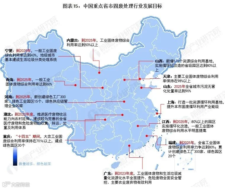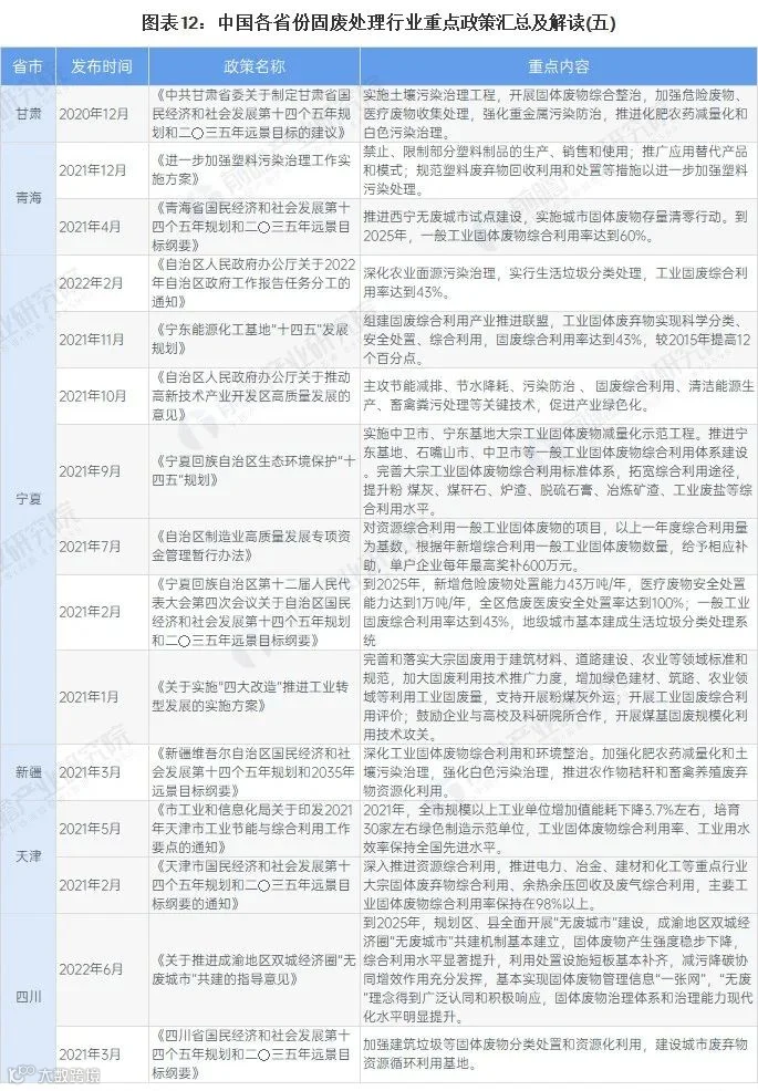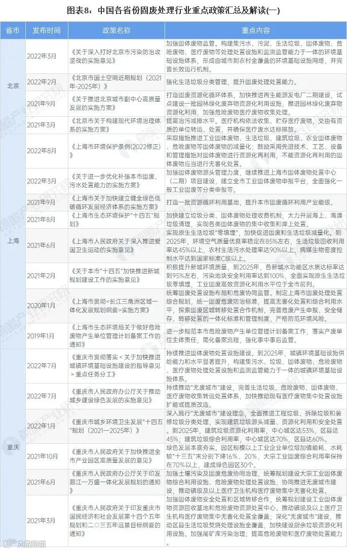 在国家政策的引导下,各省市地方政策近年来也均对固废处理行业有所提及: