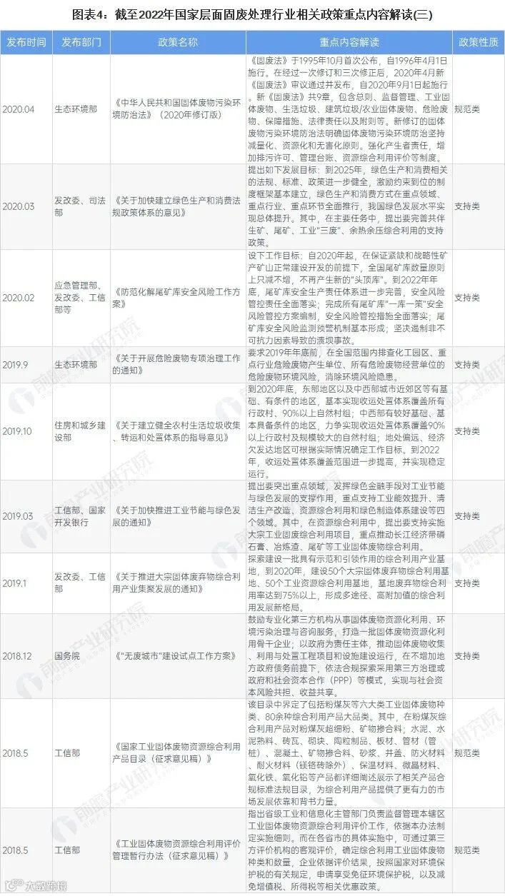 近年来,中国固废处理行业国家政策层出不穷,具体政策如下:
