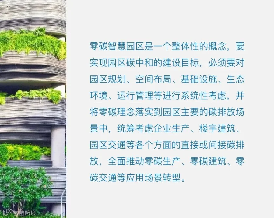 零碳智慧园区是指在园区规划、建设、管理、运营全方位系统性融入碳中和理念,依托零碳操作系统,以精准化核算规划碳中和目标设定和实践路径,以泛在化感知全面监测碳元素生成和消减过程,以数字化手段整合节能、减排、固碳、碳汇等碳中和措施,以智慧化管理实现产业低碳化发展、能源绿色化转型、设施集聚化共享、资源循环化利用,实现园区内部碳排放与吸收自我平衡,生产生态生活深度融合的新型产业园区。