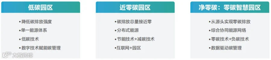 综合梳理相关园区概念,零碳智慧园区是在“双碳”背景下,历经低碳、近零碳的动态演进以及规划、建设、运营一体化持续优化迭代,最终实现净零碳排放的一种园区发展模式。